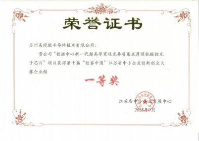 得益于公司在硅光异质集成薄膜铌酸锂技术的持续创新突破以及中试线的顺利通线,近期苏州易缆微半导体技术有限公司得到了政府部门、投资机构、行业专家的广泛关注及高度认可,入选首批中国“科创未来之星”企业,同时公司也连续揽获多项省级重要认定:在第十届“创客中国”江苏省中小企业创新创业大赛中荣获企业组一等奖;成功入选江苏省“潜在独角兽”企业名单等,充分彰显了公司以颠覆式创新引领新一代AI数据中心高速光互联产业发展的愿景。
