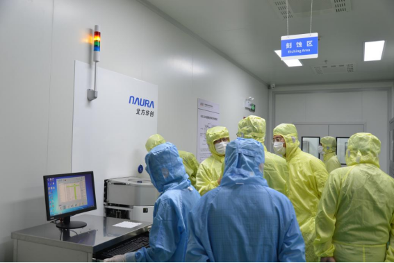 随后,领导嘉宾们在陈伟博士的带领下,实地参观了易缆微硅光异质集成薄膜铌酸锂中试线。作为国际上最早实现硅光薄膜铌酸锂异质集成的中试平台,这一中试线攻克了高精度键合与晶圆级加工等关键技术的瓶颈。易缆微的研发工程师们现场演示了薄膜铌酸锂晶圆级键合等关键环节,以及展示了芯片测试的眼图结果。与会的领导嘉宾们对易缆微工艺中试线的研发能力、工艺质量及环境布局等表示了极大的认可,对易缆微的发展前景充满期待。